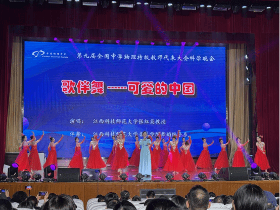 第九届全国中学物理特级教师代表大会是全国中学物理教育领域的重要盛会,吸引了全国各省市的中学物理特级教师、教育专家及教研骨干精英参会。受大会组委会邀请,我校选送由音乐学院张红英教授演唱、夏萌老师编排、舞蹈编导系学生倾力演绎的歌伴舞《可爱的中国》助力大会艺术表演环节。我校师生以饱满的热情、精湛的舞技和动人的歌声,表达对祖国的热爱与赞美,赢得了现场嘉宾的阵阵掌声,充分展现了我校师生昂扬向上的精神风貌,为大会增添了色彩。