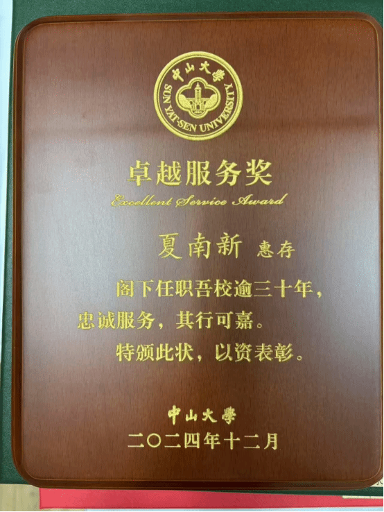 图4 2024年12月,夏南新教授获中山大学“卓越服务奖”