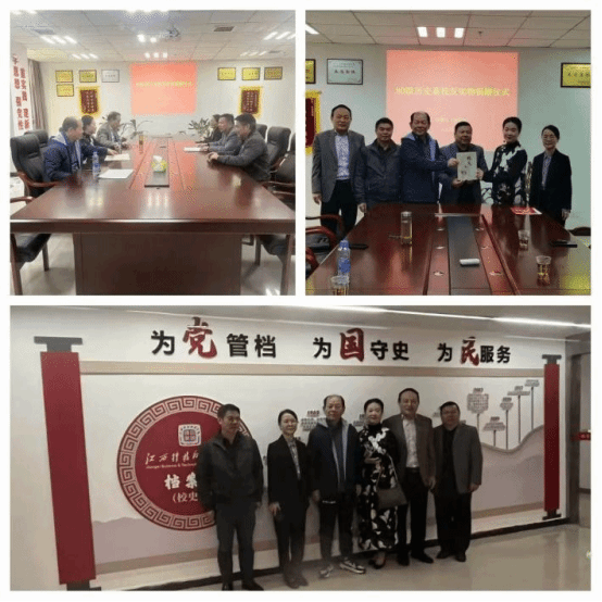 捐赠仪式在红角洲校区图书馆849档案馆会议室举行。宗云彪的同班同学、南昌市豫章中学高级教师廖薇和学校中国共产党建军精神研究院常务副院长、档案馆名誉顾问叶桉教授出席。
